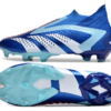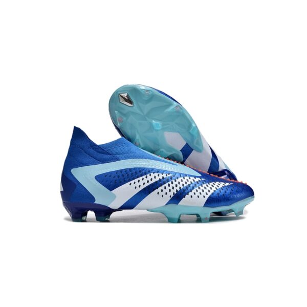 Zapatos de fútbol Adidas Predator Accuracy+ FG de caña alta, tejido completo blanco y azul sin cordones