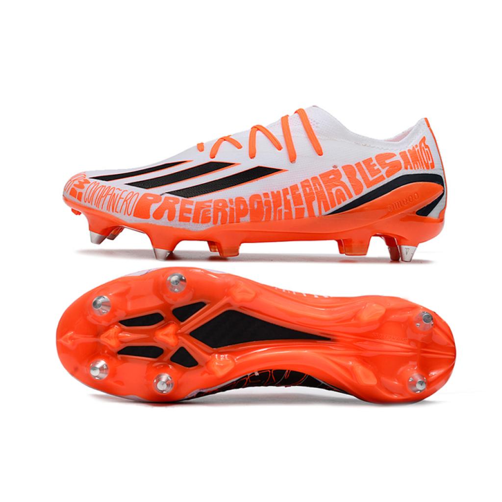 Adidas X Speedportal.1 SG botas de fútbol Adidas X Series Speed King, tejido de punto impermeable SG. en color Blanco / Naranja «Imparables»