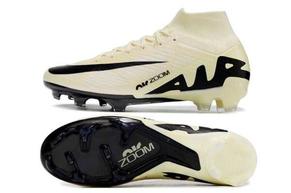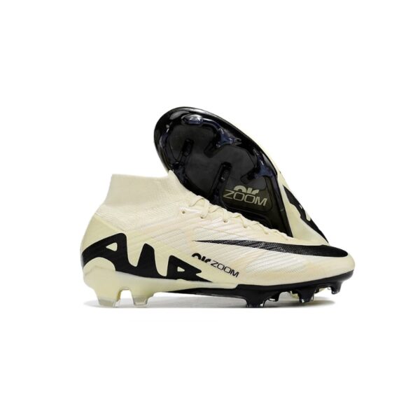 Nike Zoom Superfly 9 Elite MR FG Blanco y Beige de la XV gen de Mercurial, con tobillo alto en color blanco y beige,